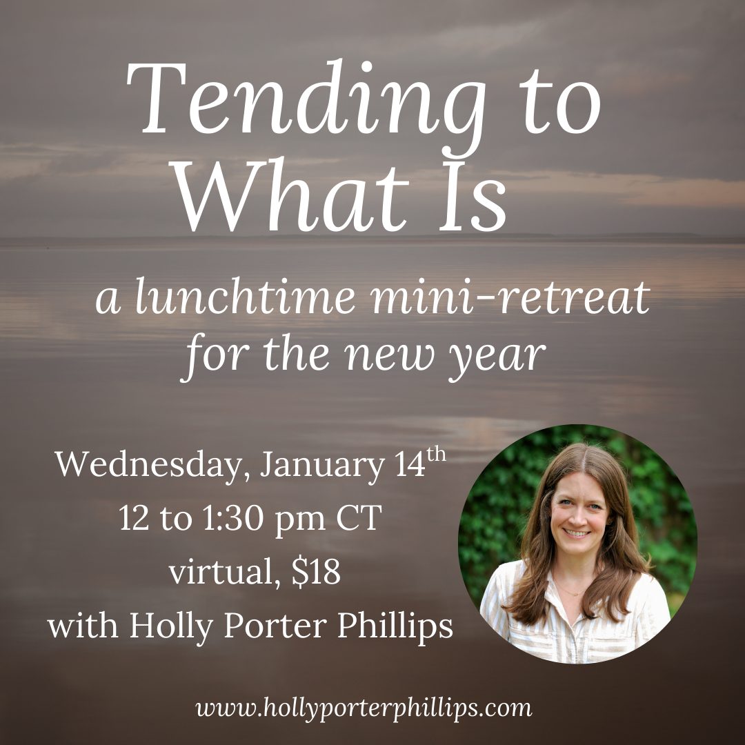 Join me for a different kind of reflection for the new year. So often, we think about what we are not doing and how we can better ourselves and make big changes. This year, let's build on and tend to what already is. On Wednesday, January 14th, I will lead a virtual lunch-time mini-retreat at noon CT, I hope you'll plan to attend. ($18, recording available).